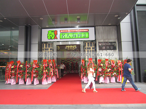 E165廣東省深圳市寶安區(qū)大食代鮭宿廚房冷藏展示柜