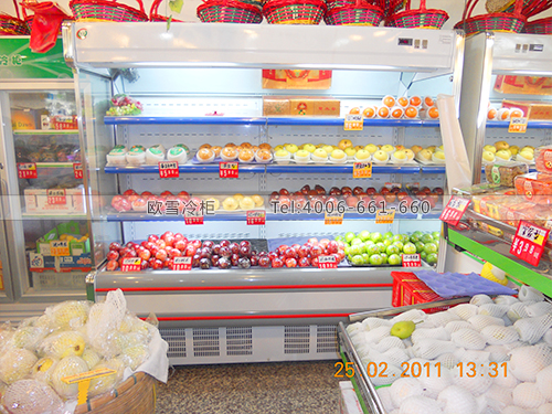 案例名稱:B022惠州惠城開心果園水果保鮮柜-惠州水果保鮮風(fēng)幕展示柜-惠州水果冷柜