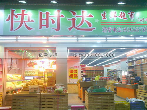 案例名稱:B072深圳福田快時達(dá)超生活超市敞開式風(fēng)幕水果保鮮柜