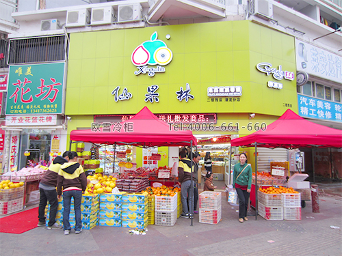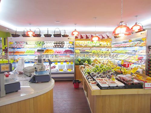 案例名稱:B086深圳寶安龍華仙果林超市水果保鮮柜-風幕柜式保鮮柜