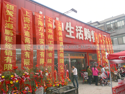 案例名稱:B099上海青浦超市飲料展示柜-鮮肉保鮮展示柜-冷凍展示柜